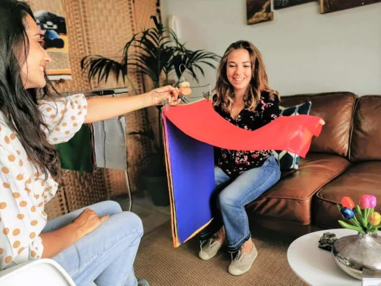 Les tissus et les vêtements deviennent alors des outils analogiques pour révéler vos souvenirs, éveiller vos sens, explorer votre inconscient. Ils vous aident à faire des prises de conscience, repartir avec du concret et une note positive. C’est une approche où les ressentis sont mis en avant, et non le rationnel.